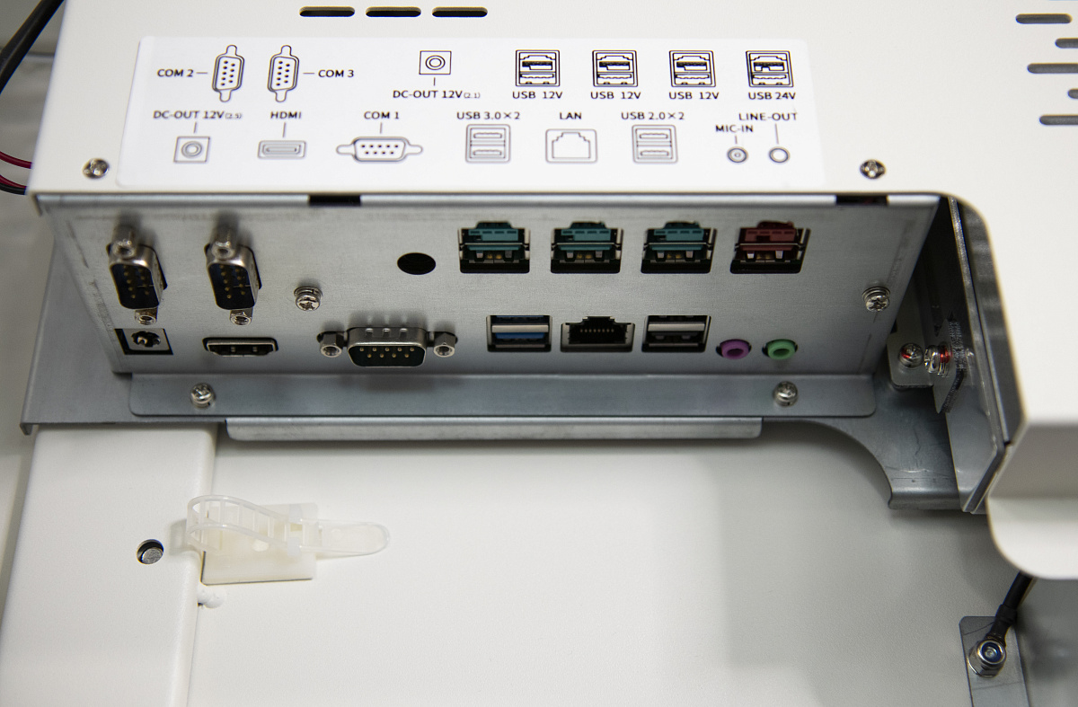 USB 3.0 x 2 + USB 2.0 x 2+ 12V PowerUSB x 3 + 24V PowerUSB x 1 COM порт RS232 x 3 Вывод изображения через HDMI x 1 LAN порт (10/100/1000 Mb)