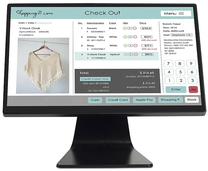 Наши менеджеры ответят на любой интересующий вопросPOS-терминал POScenter Platinum представляет собой сенсорный моноблок с диагональю 15.6 дюймов и стильными тонкими рамками. Устройство оснащено защитой от статического электричества и использует безвентиляторную систему охлаждения, благодаря прочному металлическому корпусу.