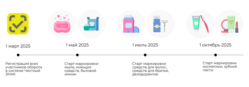 Этапы и сроки введения обязательной маркировки для косметики и бытовой химии следующие: